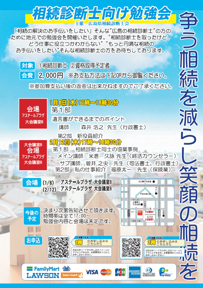 2026年1月の広島県相続診断士会の予定が決まりましたのでお知らせします。
