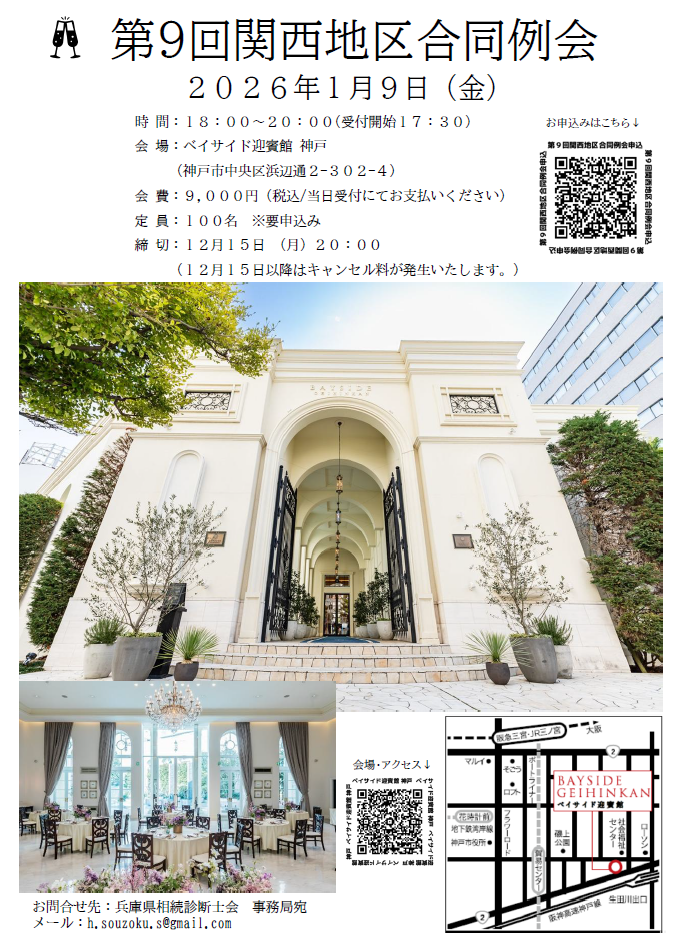 今回は兵庫県相続診断士会が主幹事として神戸会場にて開催いたします。