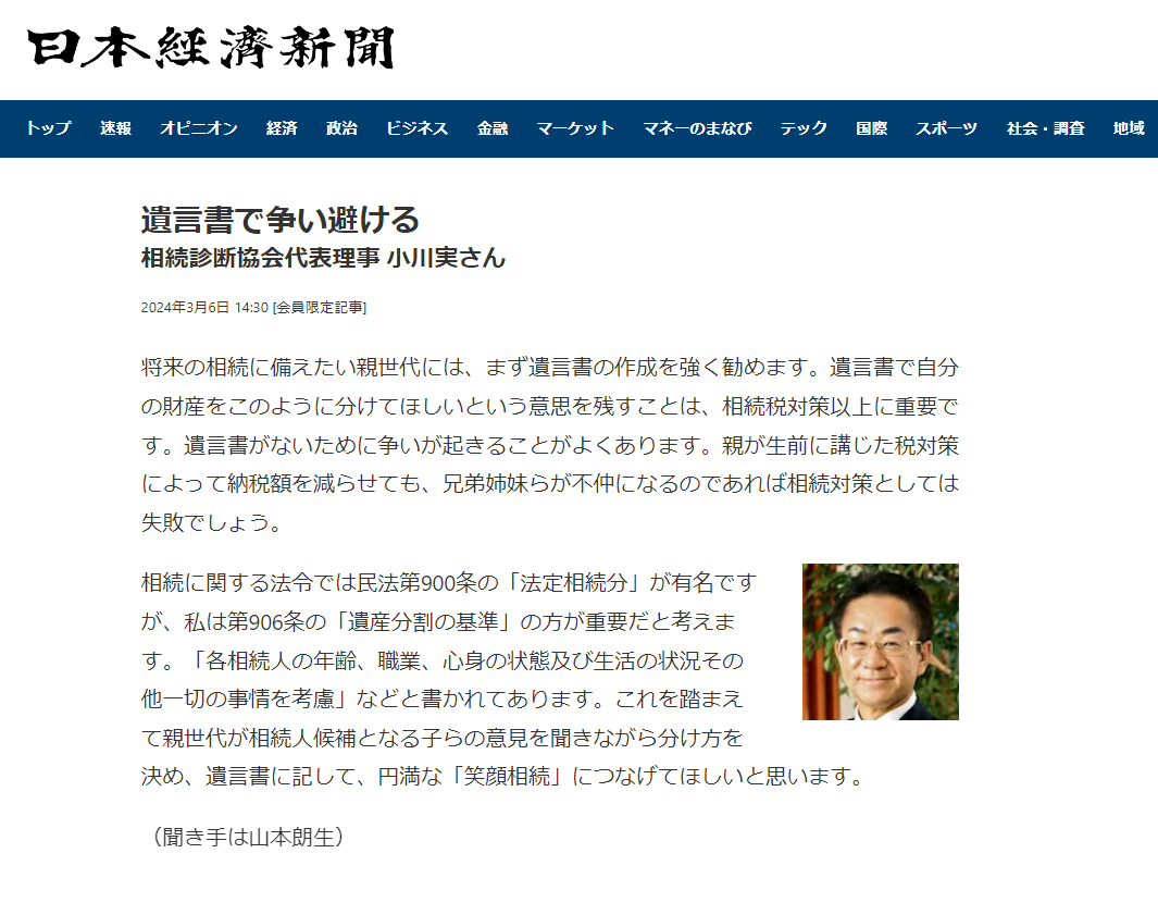 日本経済新聞夕刊(本紙・電子版) 2024年3月6日 小川代表インタビュー記事が掲載されました。