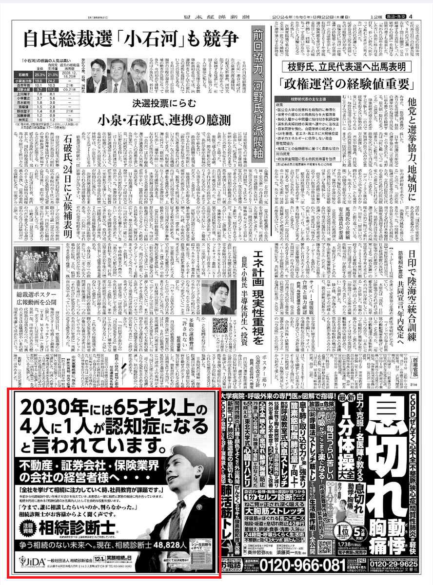 【掲載】2024年8月22日 日本経済新聞 4面にて、広告掲載。